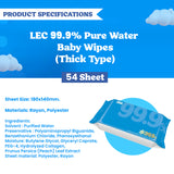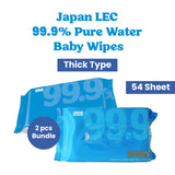 LEC 99.9% Pure Water Baby Wipes (Thick Type) 54 Sheet 2 PCS Bundle