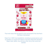 Saraya Arau Baby Virus Infection Control Sheet 25 sheets are hygienic wipes for infection control wet sheets. 99.99% removal of a wide range of viruses and bacteria with our unique formula. 100% food ingredients, no preservatives added. Also on mom's fingers.