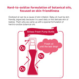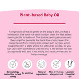 A vegetable oil that is gentle on the baby's skin, yet has a formulation that does not easily oxidize. Uses the first airless peeling bottle for baby oil. The double peeling structure and the pump that prevents the back flow of air prevent the contents (oil) from coming into contact with oxygen, which keeps the oil in a state where it is difficult to oxidize, so you can use it with confidence until the end.It fits well on the skin and spreads well, and is not sticky, so it is recommended for baby massage.