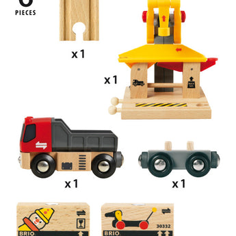 - The Freight Goods Station comes with 6 pieces including a tipper truck, cargo wagon, cargo loads and railway ramp track.