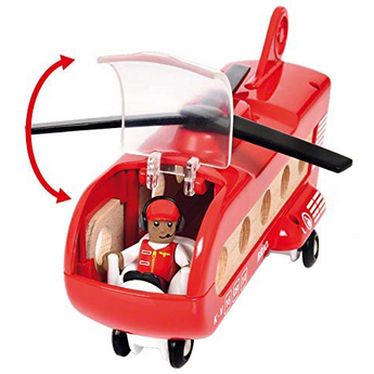 – even two fully loaded wagons. With everything in place, spin the rotor of your BRIO helicopter, take off and soar high above your BRIO World.