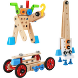 With these components and tools you can build almost anything your mind can design. A fun way to practice hand/eye coordination and creative idea construction. Includes building pieces including nuts, bolts, a hammer and a screwdriver.