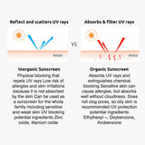 OrgaBeBe inorganic UV filter sunscreen uses inorganic UV filter more than 100nm only, to ensure it is not absorbed into skin to protect skin safely. Nanoparticles are accumulated when absorbed and are not emitted from the body system.